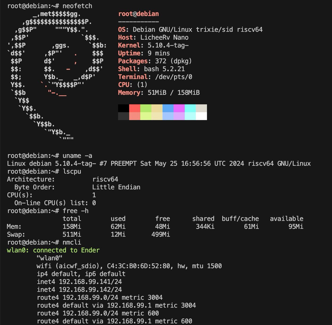 最近一直在想做一个24小时录音设备,联网后音频识别存储文字,AI提问+总结的小玩具。所以要购置一些制作 demo 的设备。上淘宝看了前些日子很火的Milk-V duo,发现没有Wifi,很难受。万能的淘宝仿佛知道我的心声,以切到主页就注意到一块近乎完美的开发板 Lichee Pi RV nano。三核心,两颗大核分别是 1GHz RISC-V C906 和 ARM A53,但只能二选一启动,很神奇的异构设计,小核心是一颗频率略低的 C906,如果用 ARM 大核 + RISCV 小核,与RK的RV1106也非常类似,看来各家都想做这种芯片。接口也是非常丰富,I2C/SPI/USB/GPIO/UART/CSI/DSI 应有尽有,甚至板载了一颗麦克风,这简直是为我的场景量身定做。